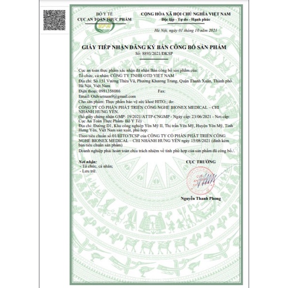 Thực phẩm bảo vệ sức khỏe hỗ trợ tăng chiều cao HJTO A+ đã được cơ quan quản lý nhà nước cấp giấy xác nhận công bố số mới nhất: 8893/2021/ĐKSP.