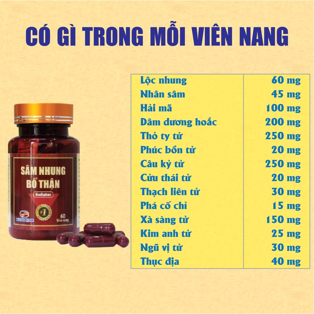 Thực phẩm bảo vệ sức khỏe Viên uống tăng cường sinh lý sâm nhung bổ thận Hadiphar (60 viên)