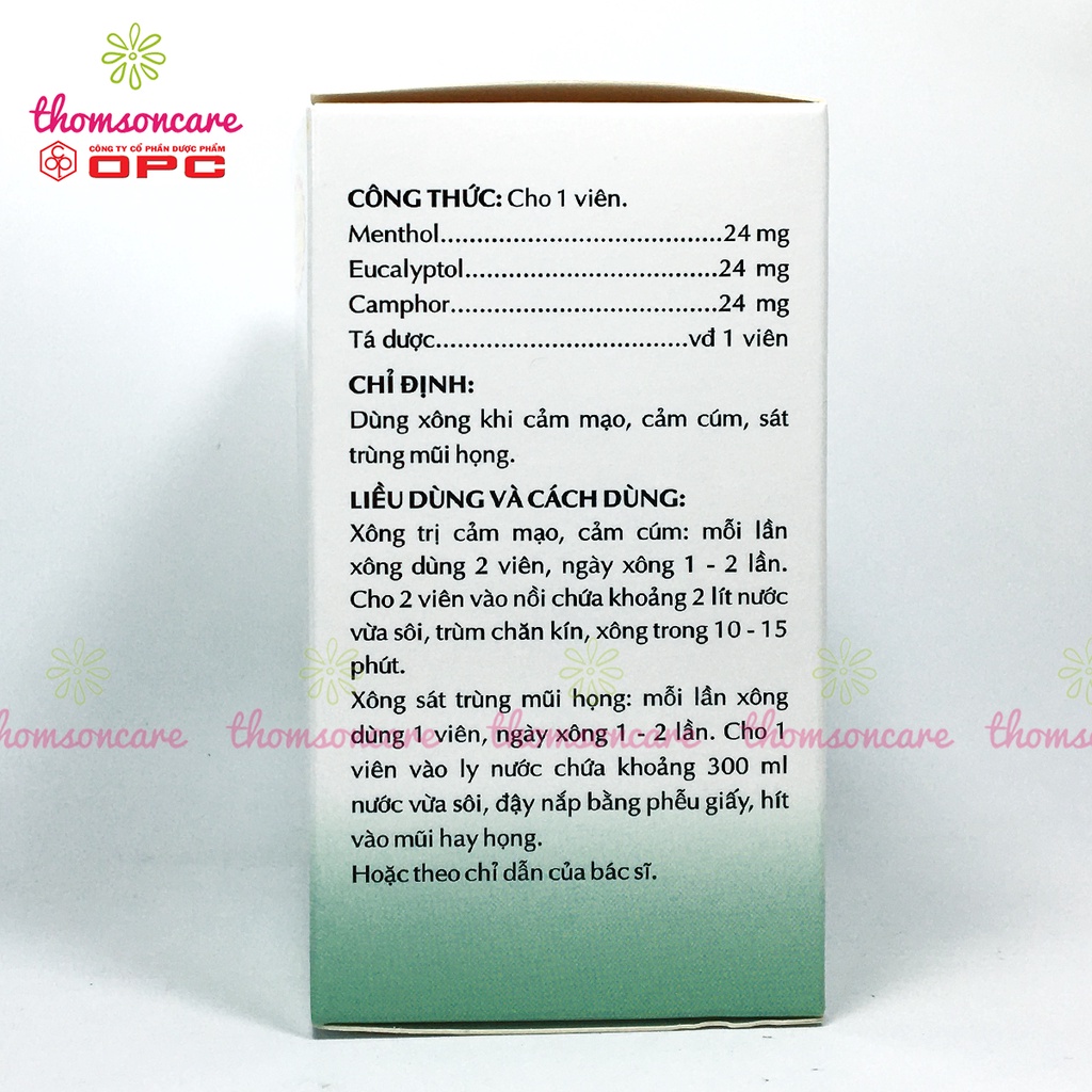 Viên xông tinh dầu, phòng ngừa cảm cúm, sát trùng mũi họng OPC từ thảo dược.