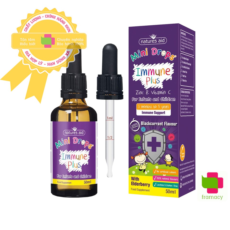 Vitamin Natures Aid Mini Drops Immune Plus, Anh (50ml giọt) giúp tăng đề kháng cho bé từ sơ sinh.