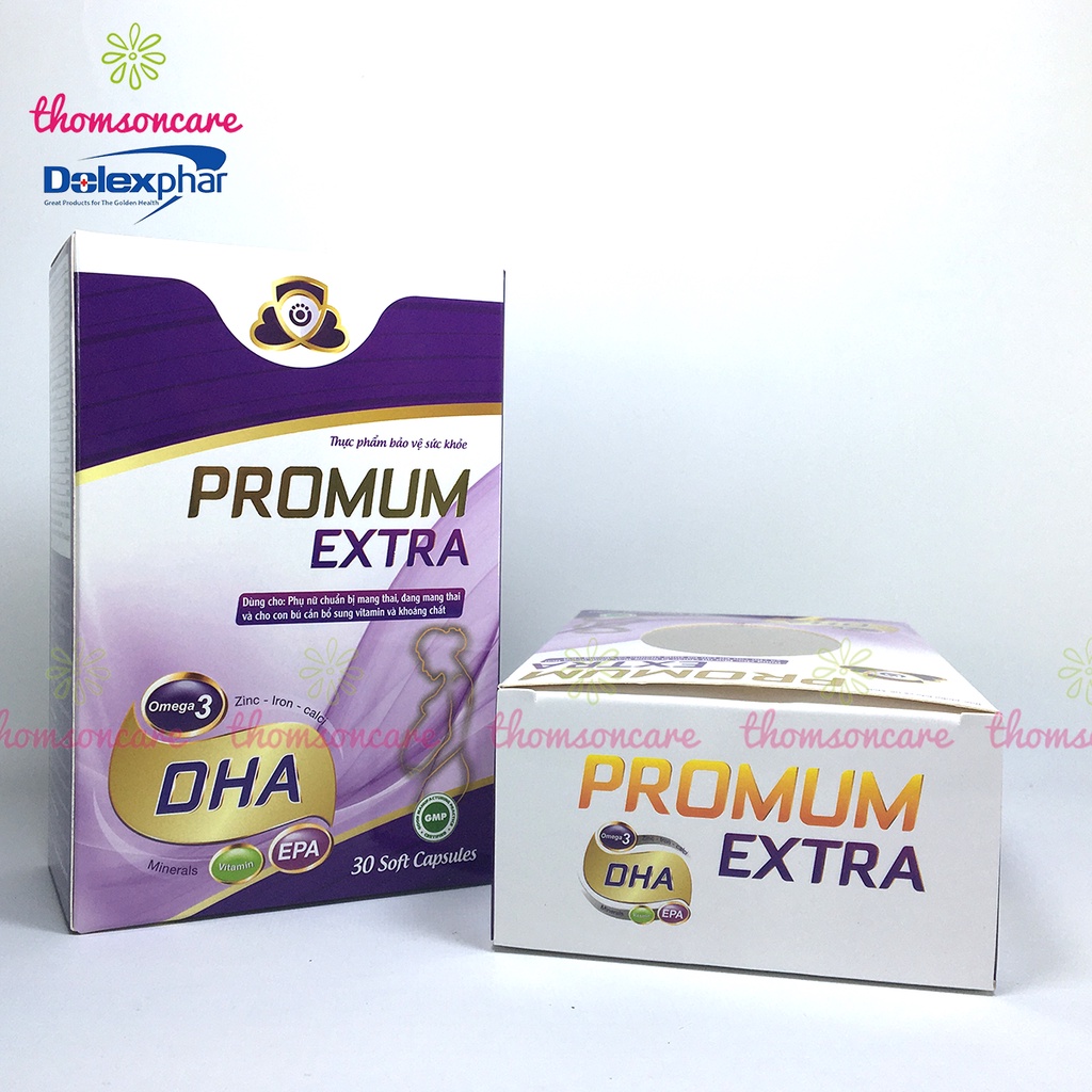 Vitamin tổng hợp cho bà bầu – Promum Extra, Lọ 30 viên từ dầu cá hồi, EPA, DHA, Omega, Canxi Acid Folic và sắt.