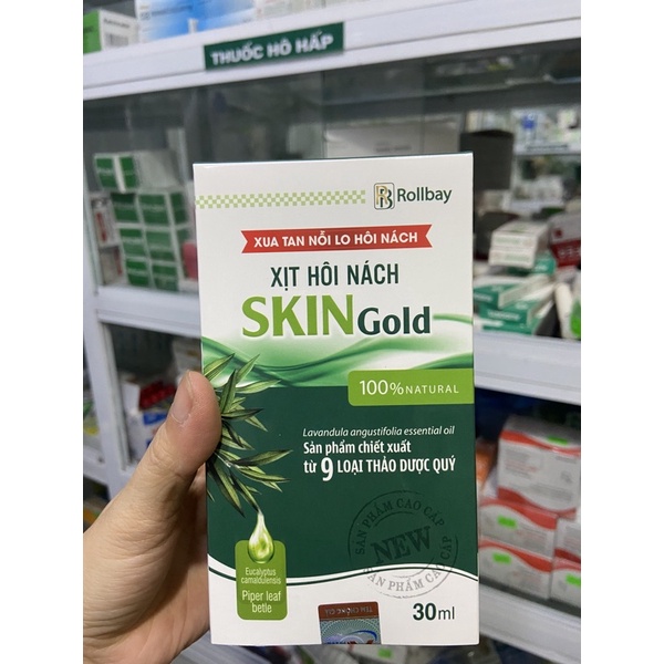 Sản phẩm xịt hôi nách skin gold chiết suất từ thảo dược thiên nhiên.với thành phần hoàn toàn từ thảo dược thiên nhiên như ” Trầu không, Oải Hương, Long Não, Khuynh Diệp, Bạc Hà, Đinh Hương và các thành phần bí truyền khác… giúp ngăn khuẩn, ngăn cản mồ hôi, khử mùi hôi, giúp da sạch và căng hơn đặc biệt hoàn toàn thân thiện với da, không gây kích ứng hoặc tác dụng phụ