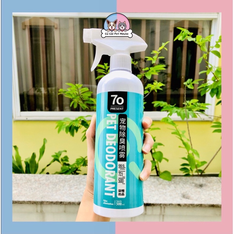 – Xịt khử mùi 70 Present được chiết xuất hoàn toàn từ thực vật thiên nhiên gồm nhân sâm, nha đam, thảo dược, nước khử ion, enzym sinh học complex… vì vậy rất an toàn khi sử dụng cho thú cưng