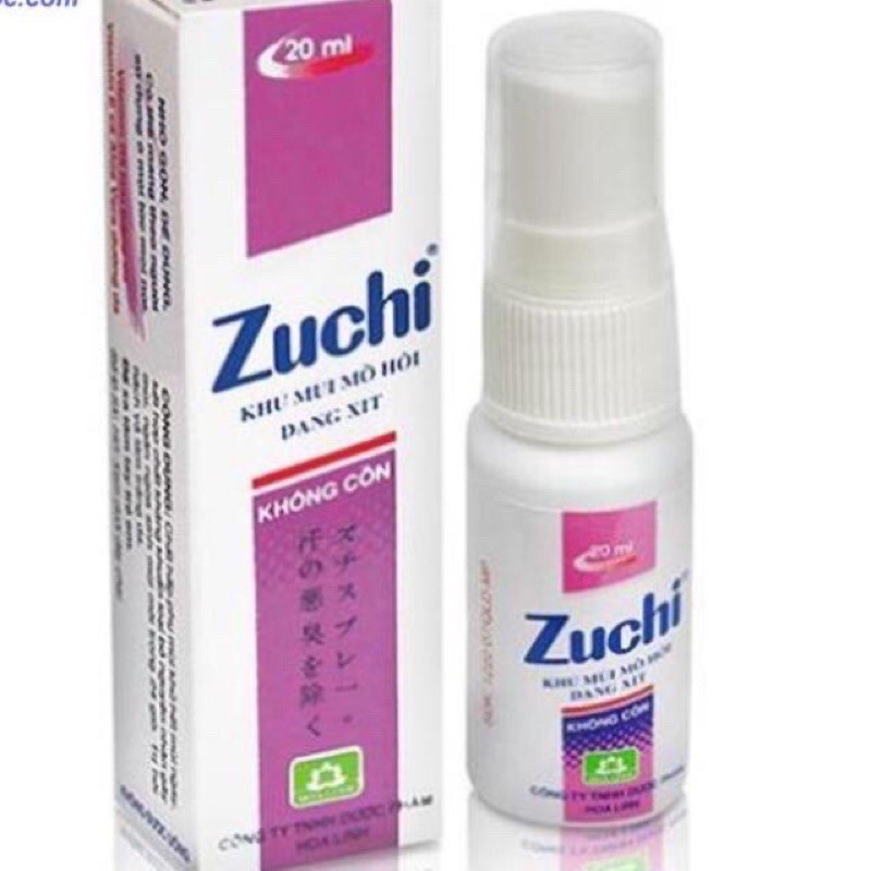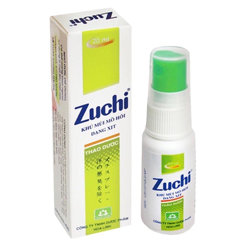 Alminium chlohydrat; Benzalkonium; Vitamin E; Vitamin B5; Menthol; Camphor; Lô hội; Dextrin có tác dụng hấp phụ mùi, khử mùi, tiêu diệt vi khuẩn, làm giảm tiết mồ hôi; dưỡng trắng da, cấp ẩm cho da. Nhờ đó, chai xịt Zuchi có công dụng khử mùi, làm sạch và ngăn chặn tiết bã nhờn, tiết mồ hôi ở vùng da dưới cánh tay tốt hơn.