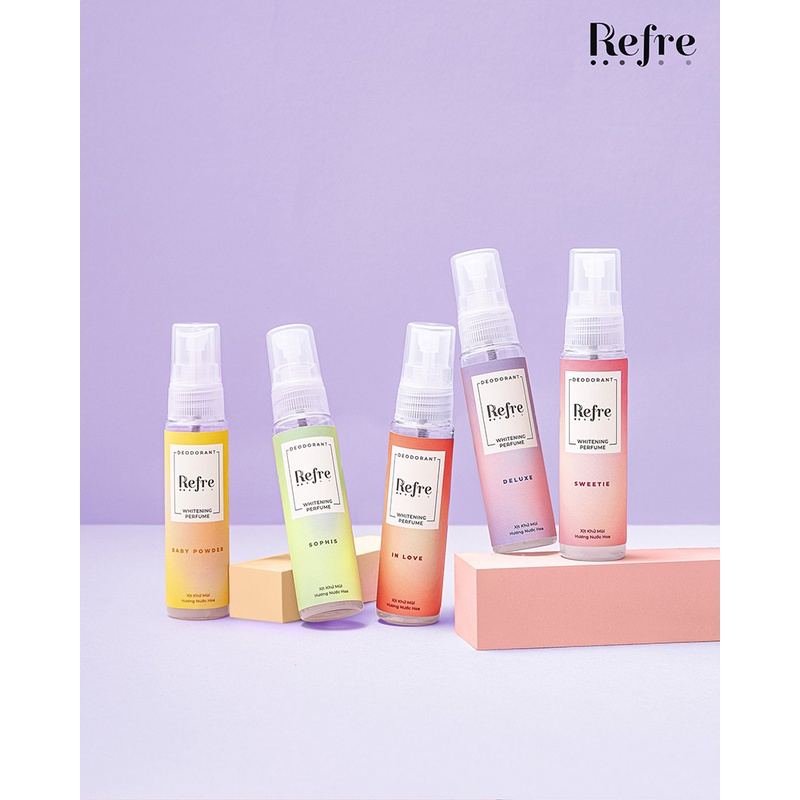– Xịt khử mùi chiết xuất thiên nhiên Refre Natural với công thức có chứa thành phần chiết xuất từ thiên nhiên giúp khử mùi cơ thể suốt cả ngày và giảm tiết mồ hôi hiệu quả đến 48 giờ.