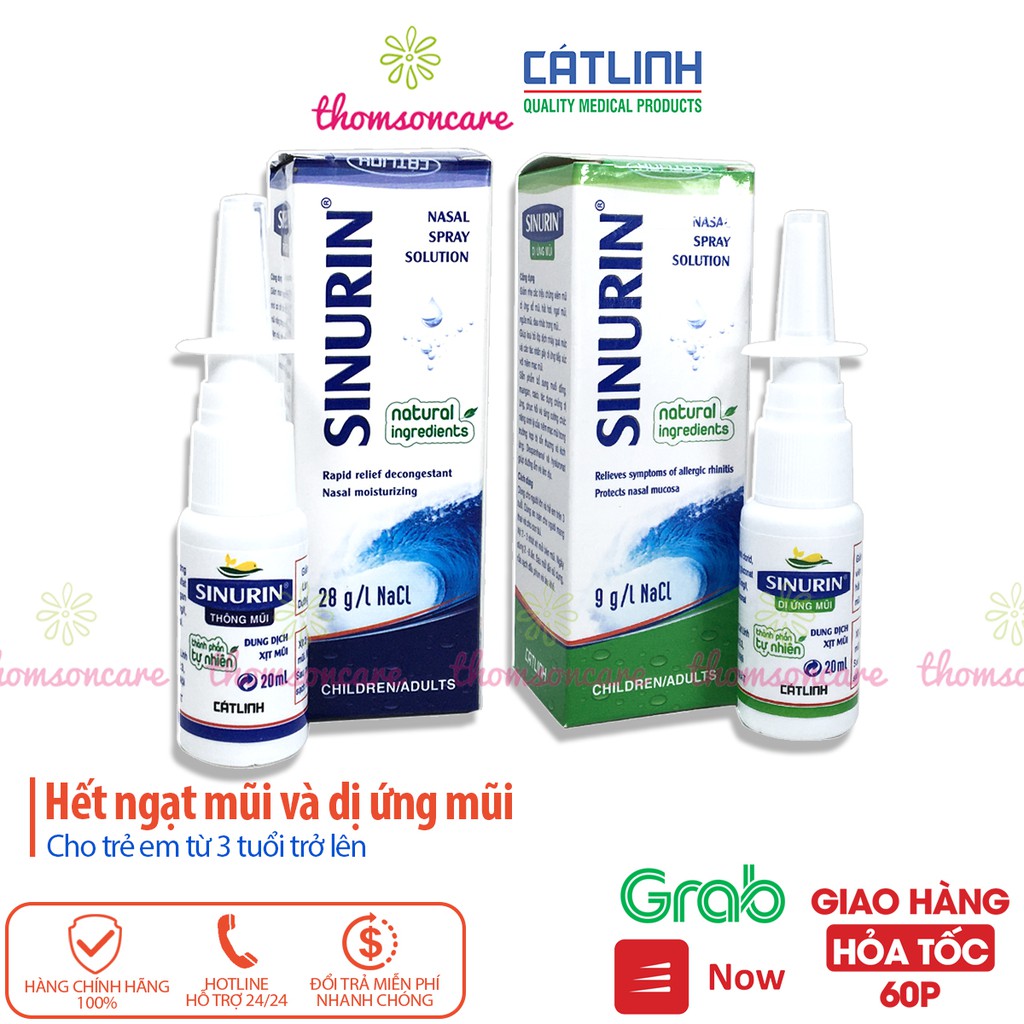 Xịt mũi Sinurin lọ 20ml giảm ngạt thông mũi xoang, dị ứng thời tiết của dược Cát Linh từ muối biển ưu trương.