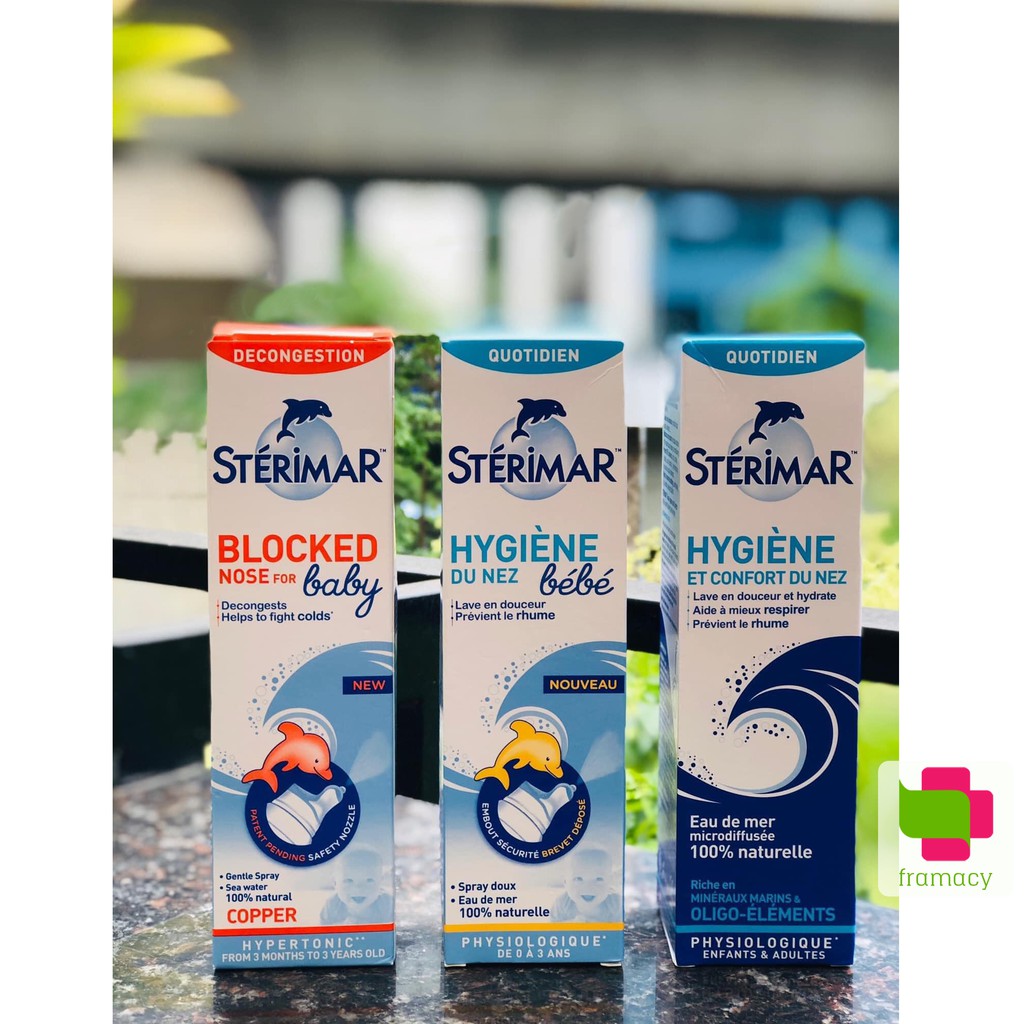 Giữ vệ sinh cho mũi của bé là một trong những việc vô cùng cần thiết và quan trọng để bảo vệ bé khỏi những bệnh về mũi. Tuy nhiên việc vệ sinh vùng mũi cho bé nhiều khi khiến các mẹ đau đầu không biết làm thế nào thì tốt. Xịt muối biển cá heo vàng và cá heo cam Sterimar (100ml) dành cho bé là lựa chọn tốt nhất cho mẹ để vệ sinh mũi cho bé cũng như kháng vie^m, giảm nghẹt mũi. Sản phẩm là nước muối biển 100% được lấy tại vịnh Cancale, Saint-Malo, Pháp ở độ sâu tối thiểu 5m và cách xa bờ trên 10km, sản xuất với công nghệ tiên tiến theo tiêu chuẩn Châu Âu.