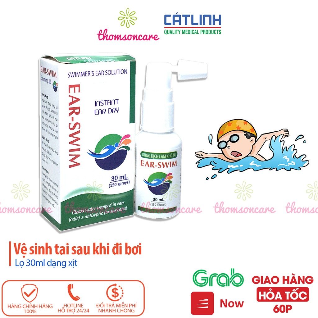 Xịt rửa tai Ear Swim – dạng xịt tiện dụng, rửa tai sau khi đi bơi, vệ sinh tan ráy tai của dược Cát Linh.